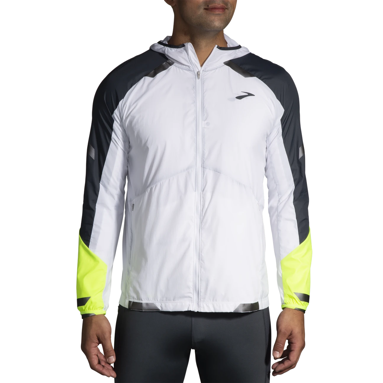 No time to run during daylight? No problem. Our reflective running jacket will help you stay seen in the dark. It’s water-resistant so the rain can’t stop your run — and it stows into a built-in, wearable pack if the weather clears up midway through.