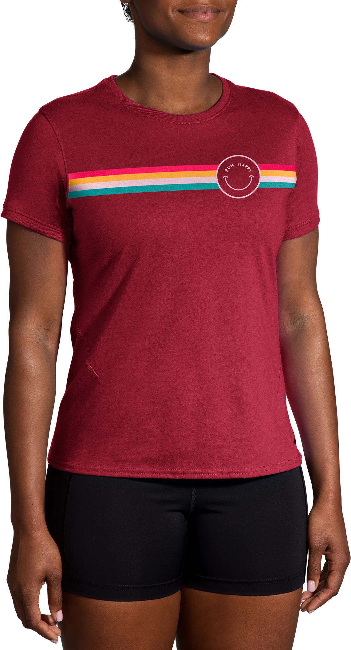 There’s more to this t-shirt than meets the eye. Upgrade your go-to gear with this lightweight women’s running tee. Soft, quick-drying fabric wicks away sweat while the run-ready fit provides distraction-free comfort.