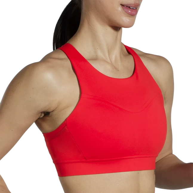 Run without worries — your search for a sports bra with phone pocket is over. This smooth, sleek bra offers motion-reducing, compressive, high-impact support and multiple pockets for storage — including one for your phone.