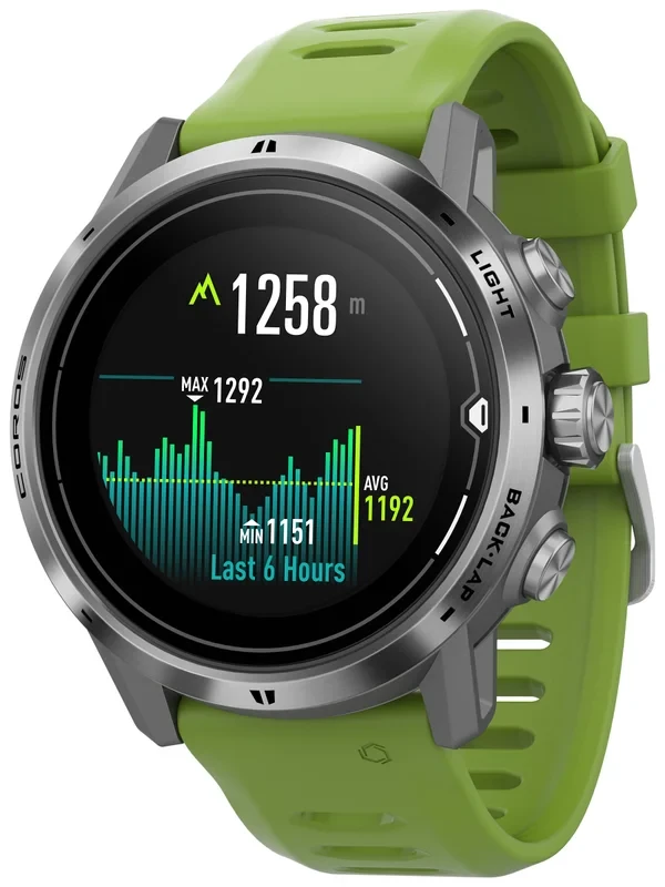 The mountain-ready COROS APEX Pro Premium Multisport GPS Watch combines elevation data with advanced training features to help you crush all of your trail runs. Designed for ultrarunners and triathletes alike, the APEX Pro offers an astounding battery life, multi-sport tracking, highly durable titanium frame and sapphire lens, and easy to use controls. Updates from the standard APEX watch include an oximeter and Altitude Mode that monitors your blood oxygen (SpO2)Â acclimation in elevation and issues safety warnings if necessary. Another notable update is Multi-day Workout which lets you pause your activity and resume it at a later time while still allowing standard watch functionality. Improvements were also made to the controls, making it easier to navigate using either the new touchscreen or its enhanced control knob.