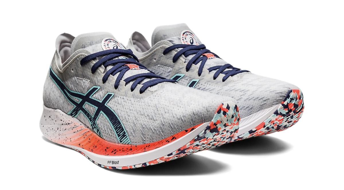 The MAGIC SPEEDâ„¢ shoe is made for racing or regular training runs. It offers the versatility you need to move your body and your mind towards a new personal best. Part of our CELEBRATION OF SPORT pack, the shoe features a vibrant colorway that recognizes the positive influences that sports bring to athletes. Made to propel your foot forward, GUIDESOLEâ„¢ technology is combined with a carbon forefoot plate. This creates a smooth rolling sensation as you move through your stride. Traditionally, when you add more foam to a shoe, you add more weight. By stacking the midsole with FF BLASTâ„¢ cushioning, this material adds a responsive feel to your step while keeping the shoe lightweight.