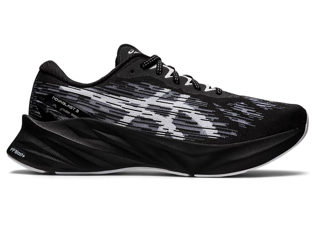 The NOVABLAST™ 3 running shoe draws inspiration from a geometric origami feature for the upper and midsole. After making the shoe approx. 30g lighter than the previous version, we also equipped this style with improved comfort. A tongue wing construction in the upper helps improve the fit while reducing tongue movement. This component is reinforced with a more supportive heel design to help guide the foot with more control through your gait cycle. Meanwhile, the midsole’s FF BLAST™ PLUS cushioning helps create a lighter and more responsive feel underfoot.