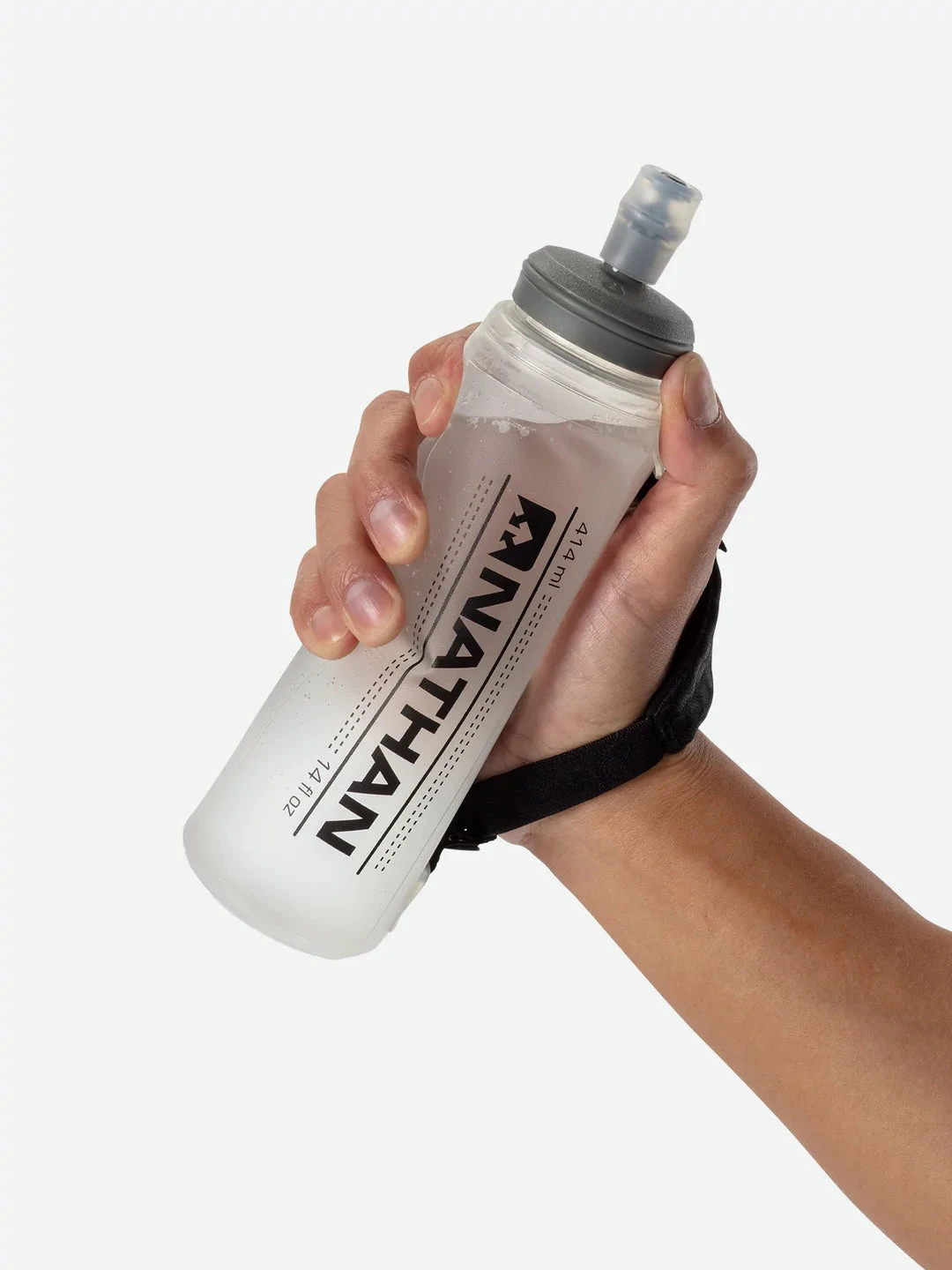 Ergonomically-designed hand-strap provides grip-free comfort, and maximizes running efficiency. Breathable wicking mesh under hand position provides superior grip while the ExoSpine™ creates superior hand feel and support for the soft flask.