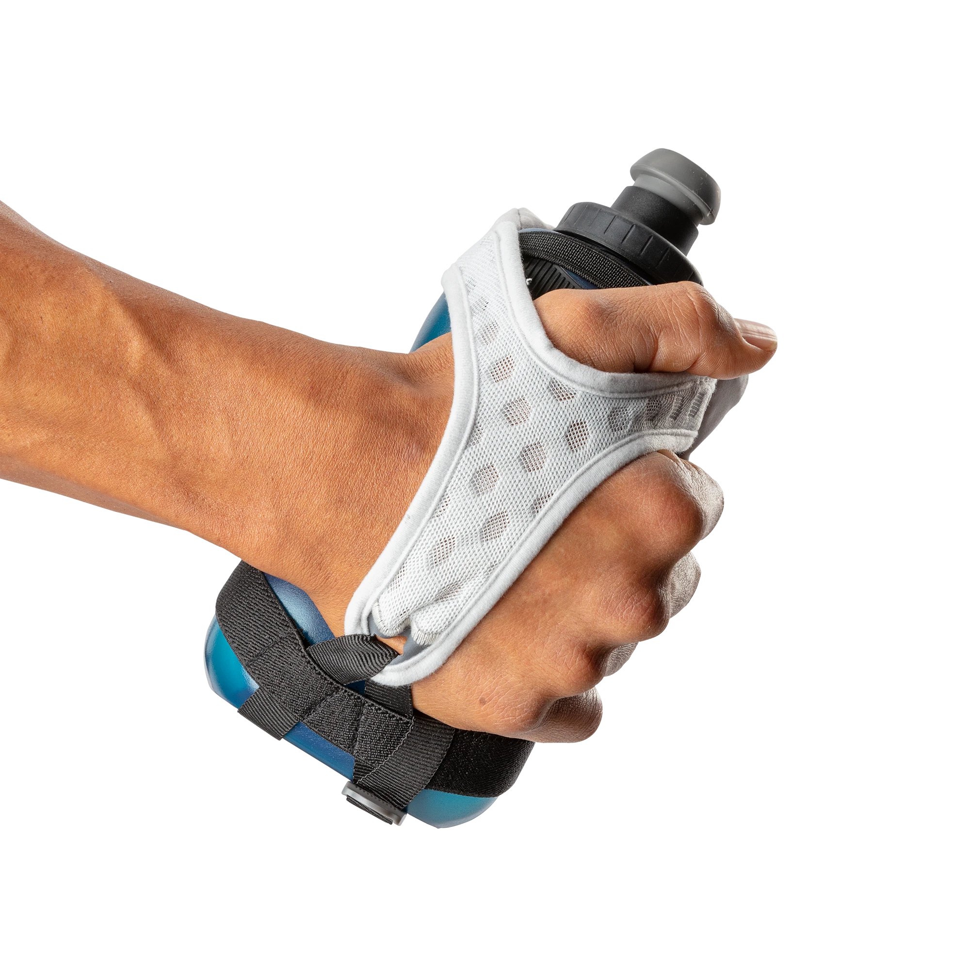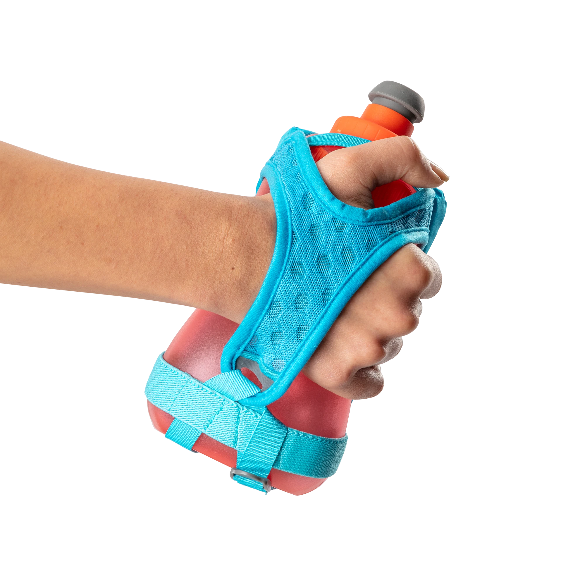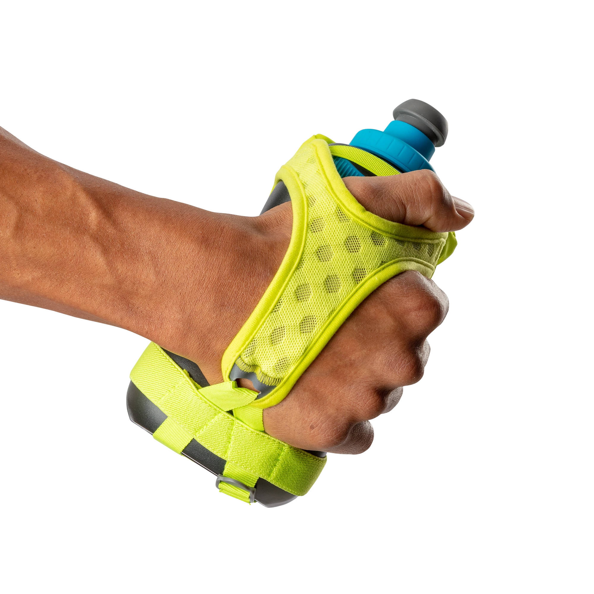 Designed as the ultimate hydration handheld ideal for running, hiking, walking and other sports. The QuickSqueeze 18oz Handheld features a grip-free, fully adjustable hand strap and storage for your phone and more.