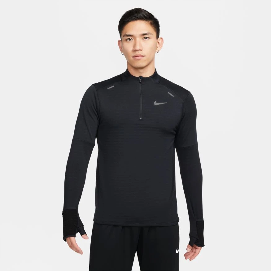 Your run doesn’t stop when rain begins. With the Nike Therma-FIT Repel Element Top, you’ll have soft, warm fabric—made with at least 75% recycled polyester fibers—with water-repellent properties to help keep you comfortable in wet weather. A 1/2 zip design lets you control your airflow, while a 3-way mitten system gives you options when it comes to extra coverage. Its lightweight and versatile design lets you wear it as a mid-layer or only layer.