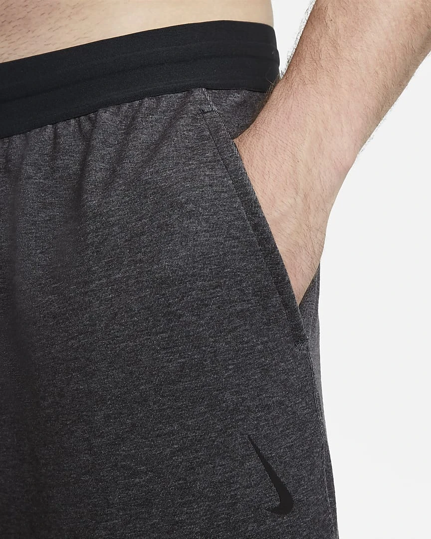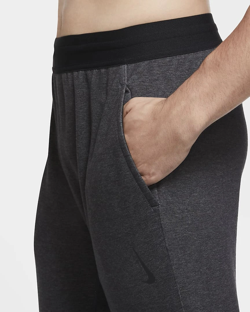 The Nike Yoga Pants give you a lightweight, comfortable layer for the mat. Soft fabric stretches around the waist and the ankles to keep it in place as you move. This product is made with at least 75% sustainable materials, using a blend of both recycled polyester and organic cotton fibers. The blend is at least 10% recycled fibers or at least 10% organic cotton fibers.