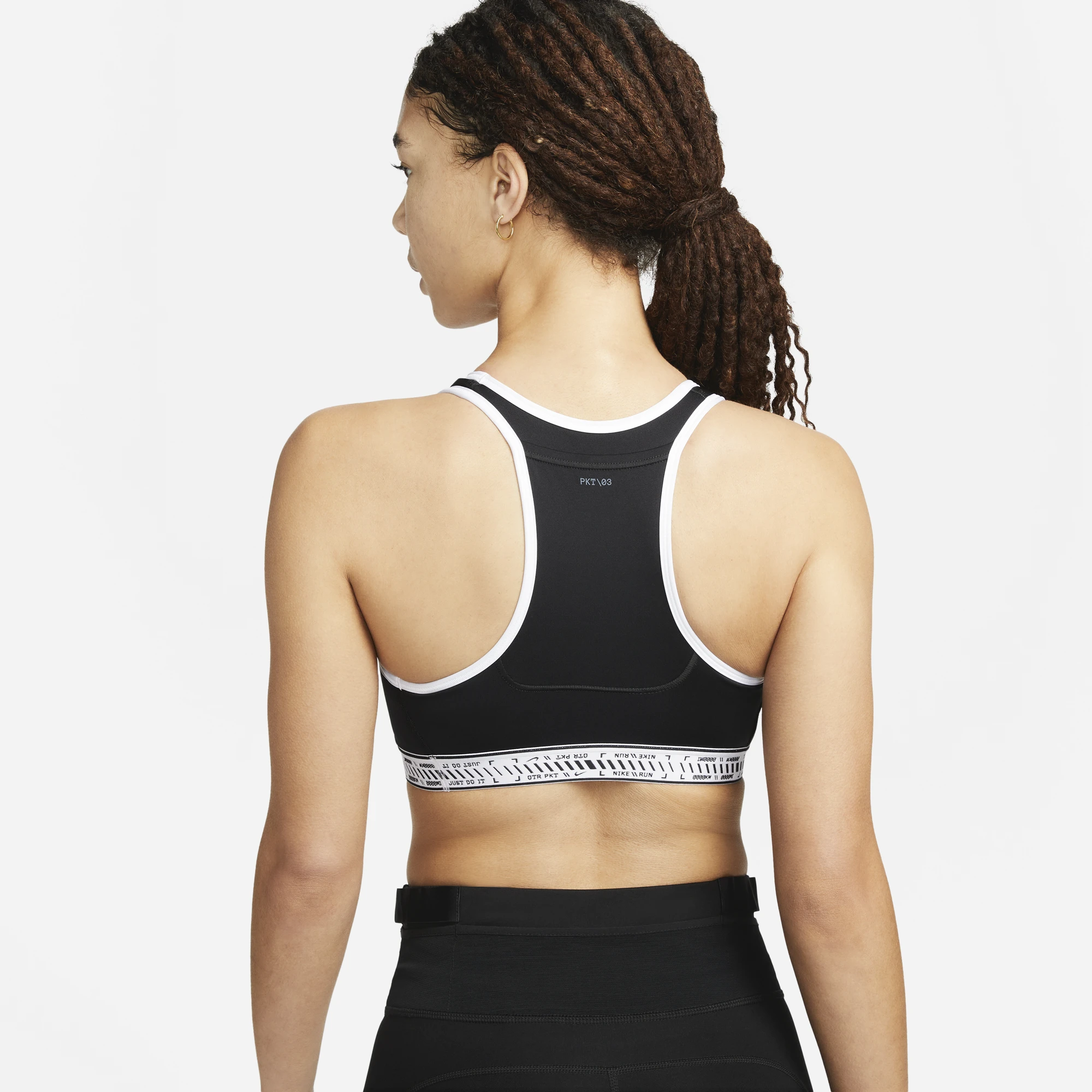 Feel confident and go all out—without having to leave anything behind—in this medium-support sports bra. 3 mesh-lined pockets hold your phone, a snack or an extra layer so you can explore without limits. The lightweight, sewn-in spacer lining feels breathable while still giving you a little coverage, and sweat-wicking tech helps you keep your cool on the run.