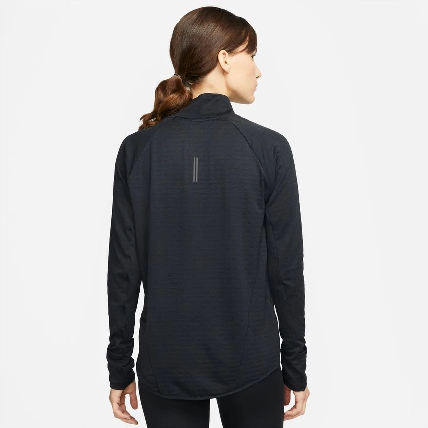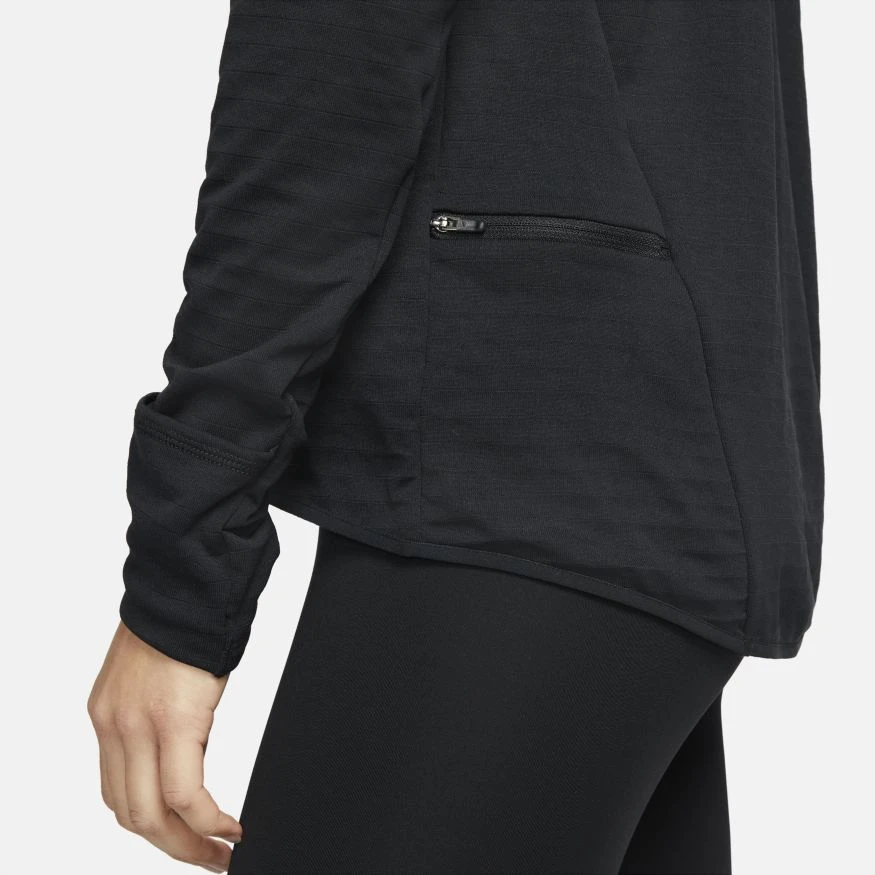 Take on your route in cooler temperatures with the Nike Therma-FIT Element Top. Its 1/2-zip design features heat-managing fabric with Swoosh-shaped nodes to help keep warmth in during cold-weather runs. Built-in mittens with thumbholes keep your hands warm. Wear it on its own or as a layering piece. This product is made with at least 75% recycled polyester fibers.