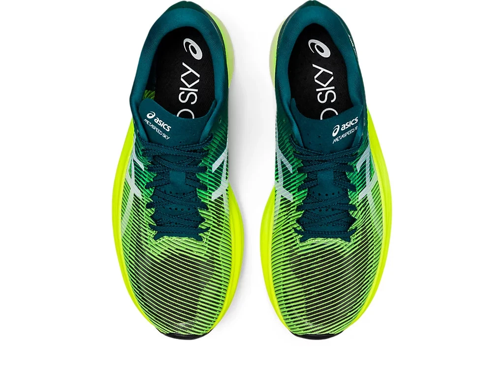 The METASPEEDâ„¢ SKY+ racing shoes are designed for stride-style runners who are looking to start fast and finish faster. Runners wearing these shoes will be able to take longer strides while conserving energy with each step. Thanks to an energetic midsole foam and a propulsive carbon plate, runners wearing these shoes will be able to conserve more energy while maintaining their pace at the later stages of the race.
