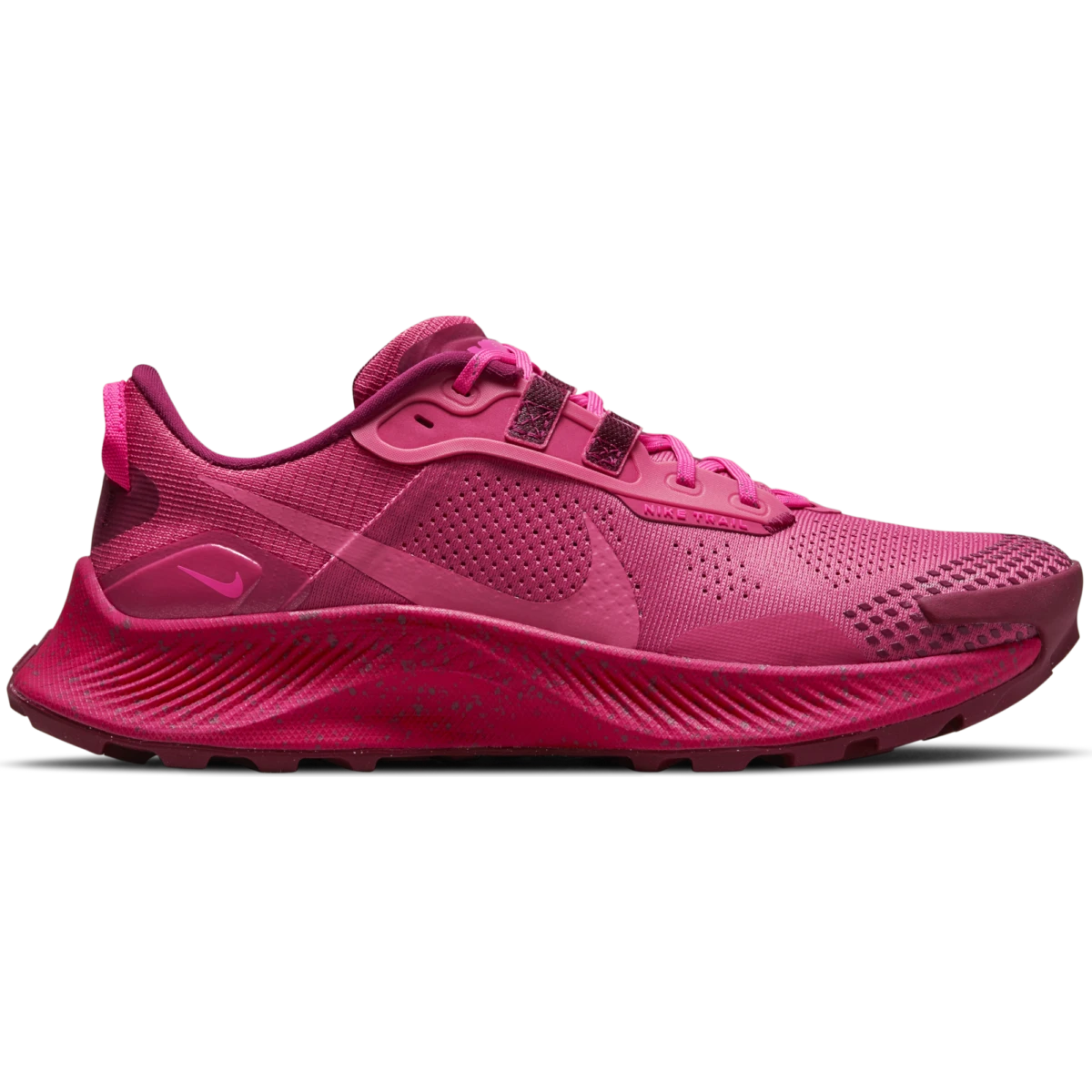 Leave nobody behind. The Nike Pegasus Trail 3 embraces this inclusive belief that everyone finishes the run with a reflective message inscribed onto the tongue. It has the same cushioned comfort and design you love, refreshed with a vibrant pink colorway brightness with every step. Plus, a carabiner is hooked to the laces so you can easily latch them to your bag and take them on the go.